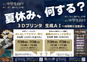 今年の夏休みは、新潟県見附市で、中学生向けの特別な体験イベントを開催します。3Dプリンタを使ったものづくりと、最新の生成AIに触れる2つの魅